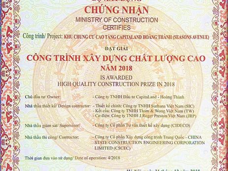 (中文) 中建东南亚公司河内四季大道项目荣获越南2018年度国家优质工程奖